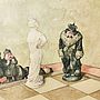 Stampa umoristica intitolata 'Schachmatt' (scaccomatto) di Robert Hogfeld (1894 - 1986), pittore, illustratore e fumettista svedese; periodo, anni '30.