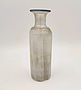 Bottiglia design svedese della serie 'Network' di Bertil Vallien per Kosta Boda. Il vetro è caratterizzato da un motivo a rete, una leggera iridescenza distinguibile nel collo e profilo di un azzurro intenso. Firma (BODA ARTIST COL B VALLIEN -786-) sotto la base. Svezia, anni '70.